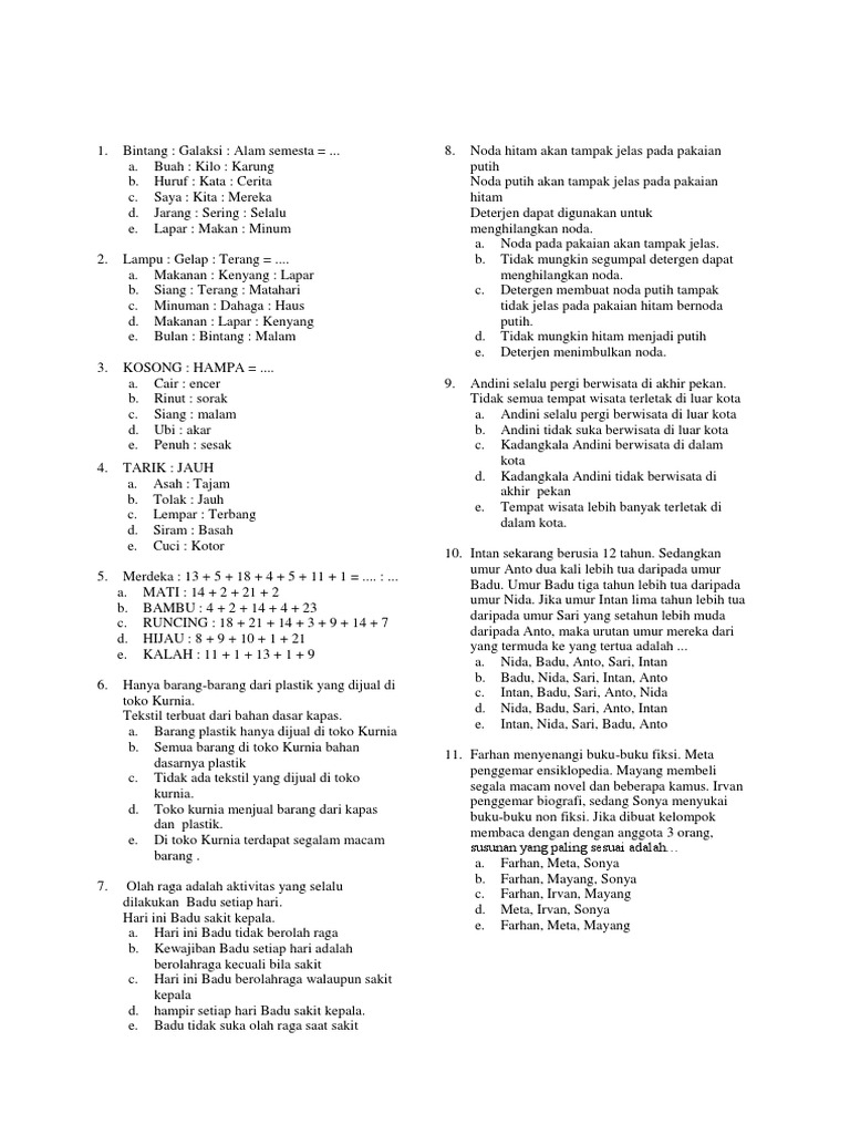 Contoh Soal Tpa Bappenas Itb Sobat Guru